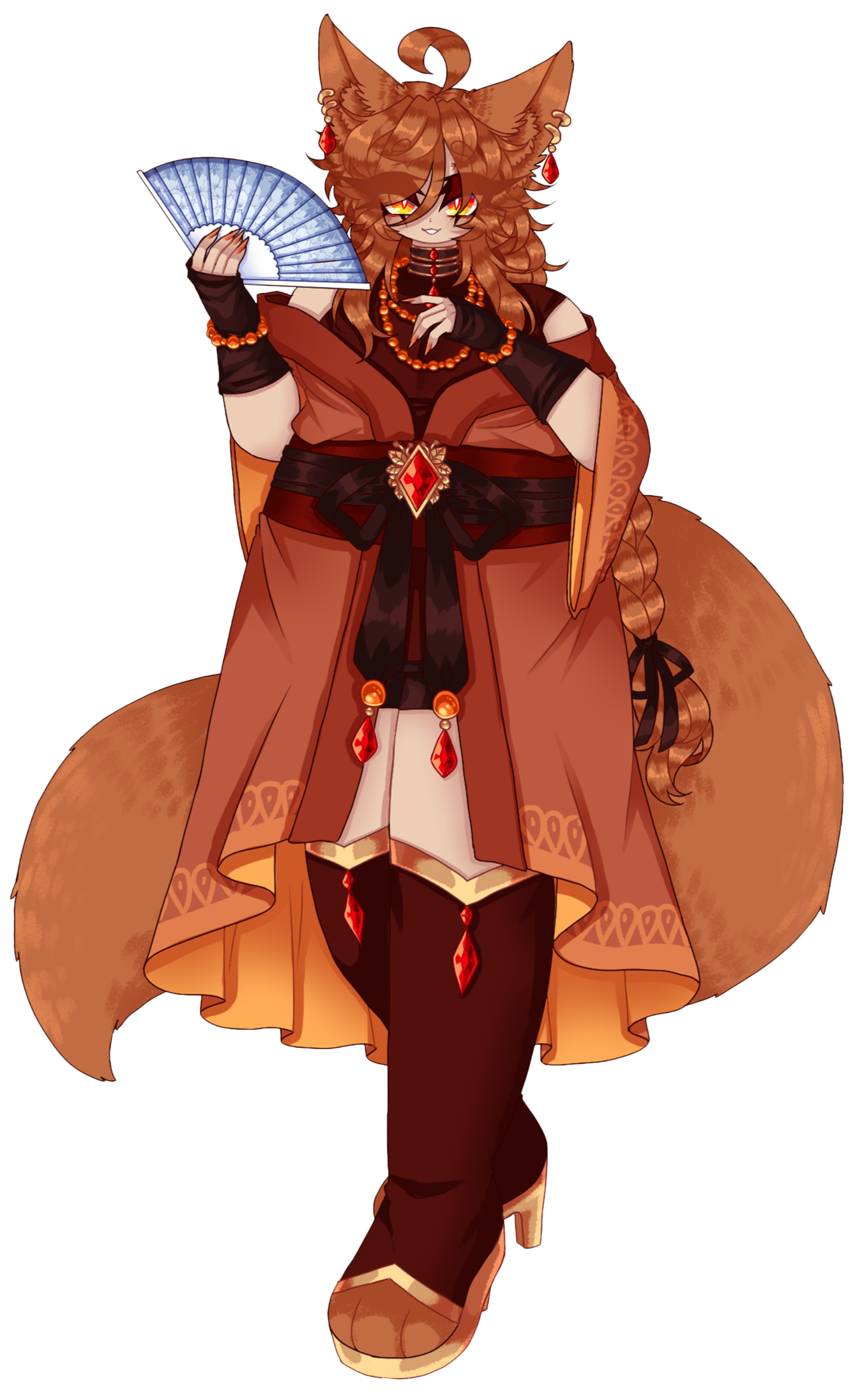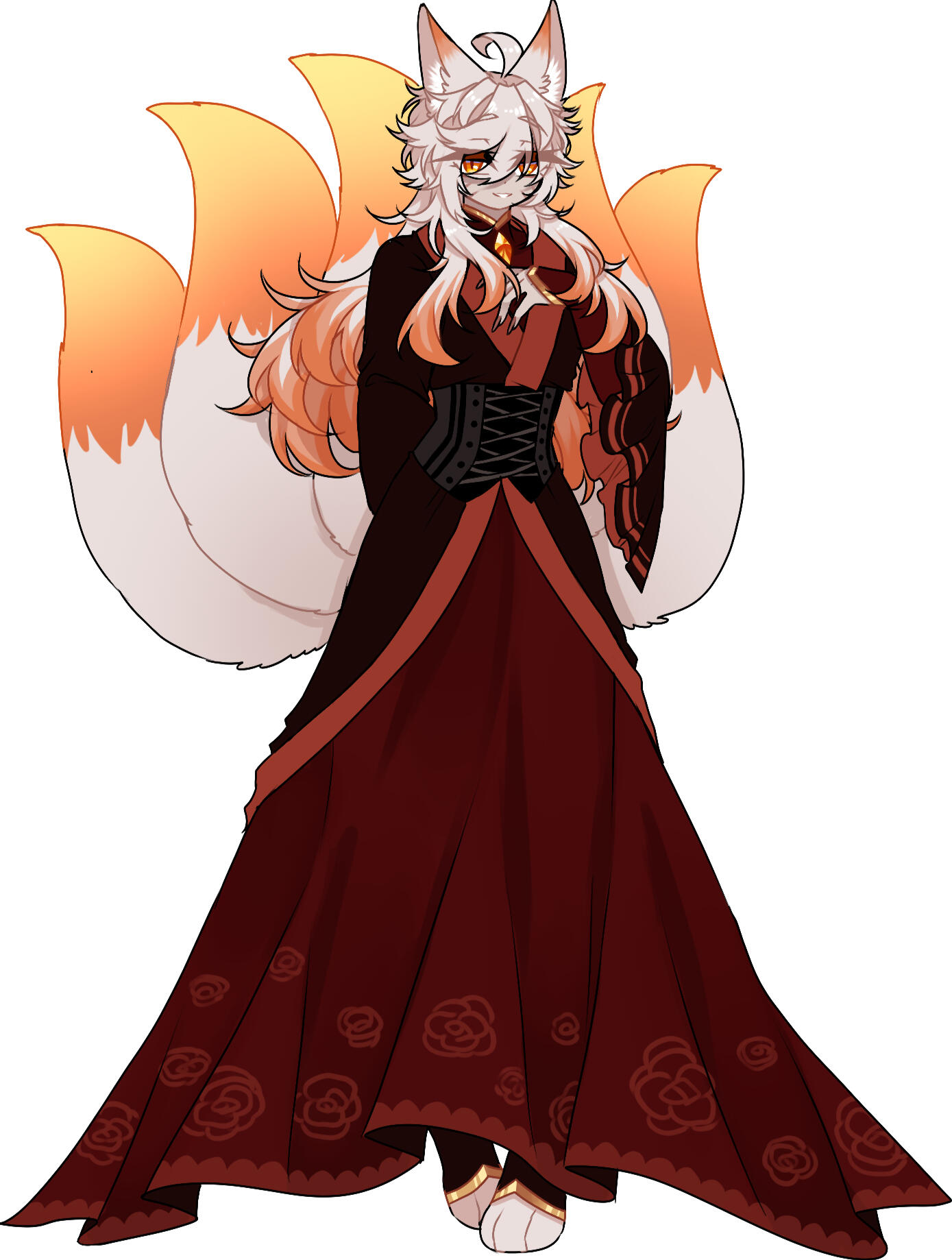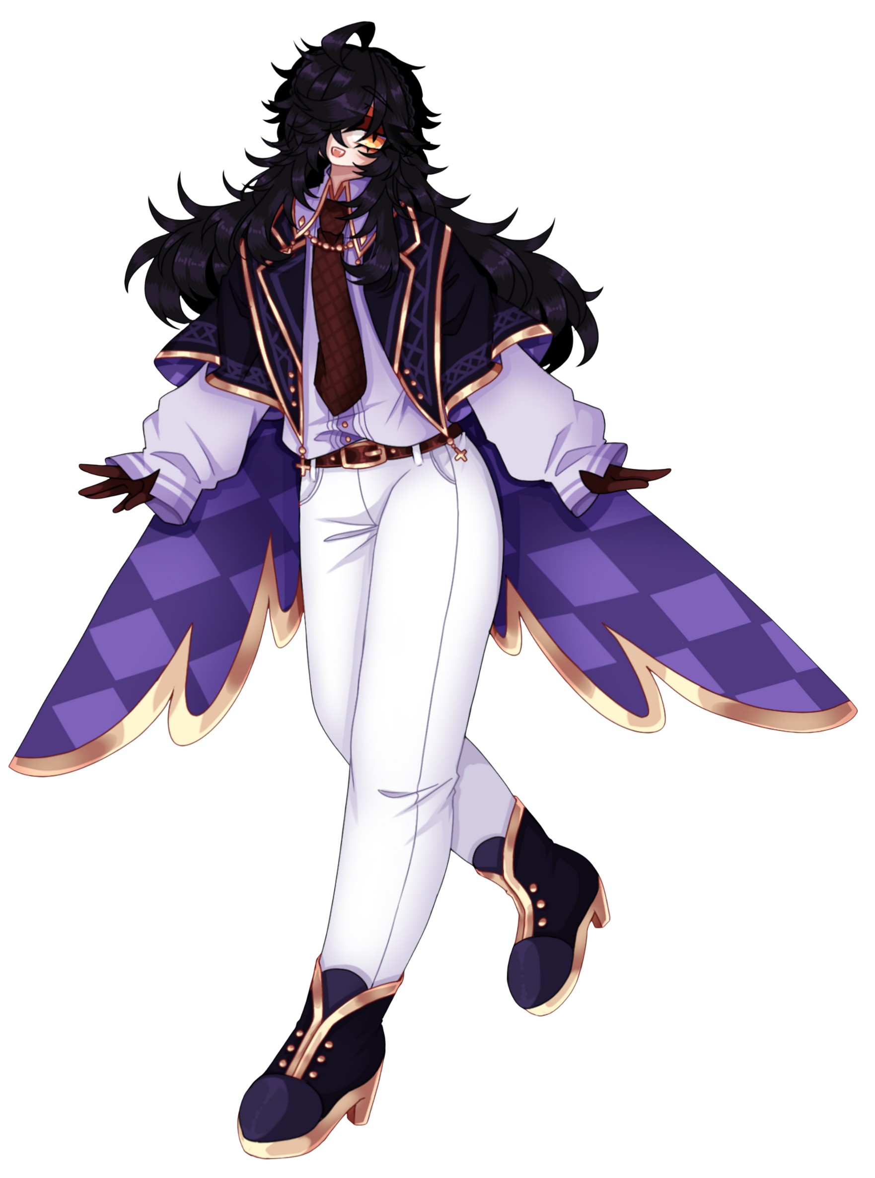 He's very loving and loyal and will absolutely gush about his partner given the chance. He also loves talking about the obscure books he picks up for fun.Despite his usually positive demeanor, he can be quite cold and cruel at times, lacking in 'human morals', although he is working on it. He can also be overprotective at times.He's absolutely loves meat and doesn't enjoy sweet things.He enjoys fashion and accessories, finding it fun to look pretty.His shapeshifting allows him to shift into both humanoid and non-humanoid forms. The bigger the form, the more essence it drains.He currently owns a collection of around 40 different decorative fans.