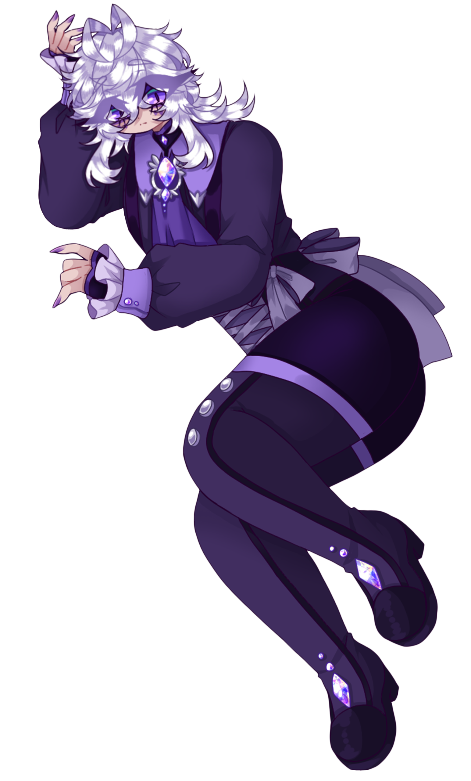 But the moment he decided to gather his courage and confess was the moment he felt like a part of him died."Incubi aren't meant to be loved. You're a tool for pleasure, not someone to be in a relationship with."Those words broke him. Any and all confidence he previously had was gone, and he ended up hating himself and what he was, considering himself a disgusting creature unworthy of love. He gradually spiralled deeper and deeper into depression as days went on.After Huey's disappearance Kiyoshi felt lost, like he didn't belong anywhere. For years he simply wandered the continent aimlessly, occassionally numbing himself by finding partners for a night to replenish his essence.It was when he came to the Water Territory again years later where he found a new source of comfort. He passed by the temple once while one of the sermons was ongoing. The voice and warmth radiating from the priest who held it was like a soothing balm for Kiyoshi's heart. It was the first in a long time that he felt a bit of peace. He ended up staying in the Water Territory to listen to the sermons held by the priest named Olivine. It felt like the only thing he had left.But it wasn't enough to heal him fully. He was too tired of the way things were, tired of hating himself. He decided he had enough and wanted it to be over.With some struggle Kiyoshi managed to damage his gem, sending his essence haywire. He hid in an alleyway somewhere, waiting for it to take his life and end his pain.But before his life ended he was found by Eiden and Olivine a few moments before he passed out. They managed to settle down his essence and took him to the mansion where Quincy took over watching him since they were on friendly terms back in the day.Kiyoshi recovered, but his gem and psyche did not. The cracks in his gem left him with permanent mental damage, making him very anxious and often being sent into states of mental breakdown. Olivine felt bad for him, especially after hearing what he went through with Huey. So knowing that Kiyoshi was someone who admired him, the priest decided to do his best to spend time with him and give him some positive attention. Kiyoshi's love for him only grew deeper due to it and Olivine soon truly became someone who was Kiyoshi's source of peace.Olivine ended up falling in love with the incubus as well, feeling a sense of happiness and fulfillment in being able to bring him comfort and to be the one capable of soothing him during his breakdowns.With Olivine's presence Kiyoshi managed to become somewhat stable and lives by his side, turning into and pretending to be a cat whenever they're outside with strangers so that his horns and tail don't catch too much attention and cause Olivine to be questioned about being around an incubus.