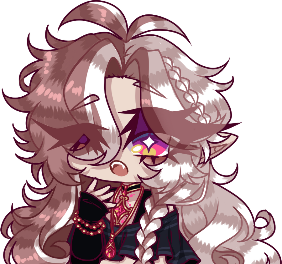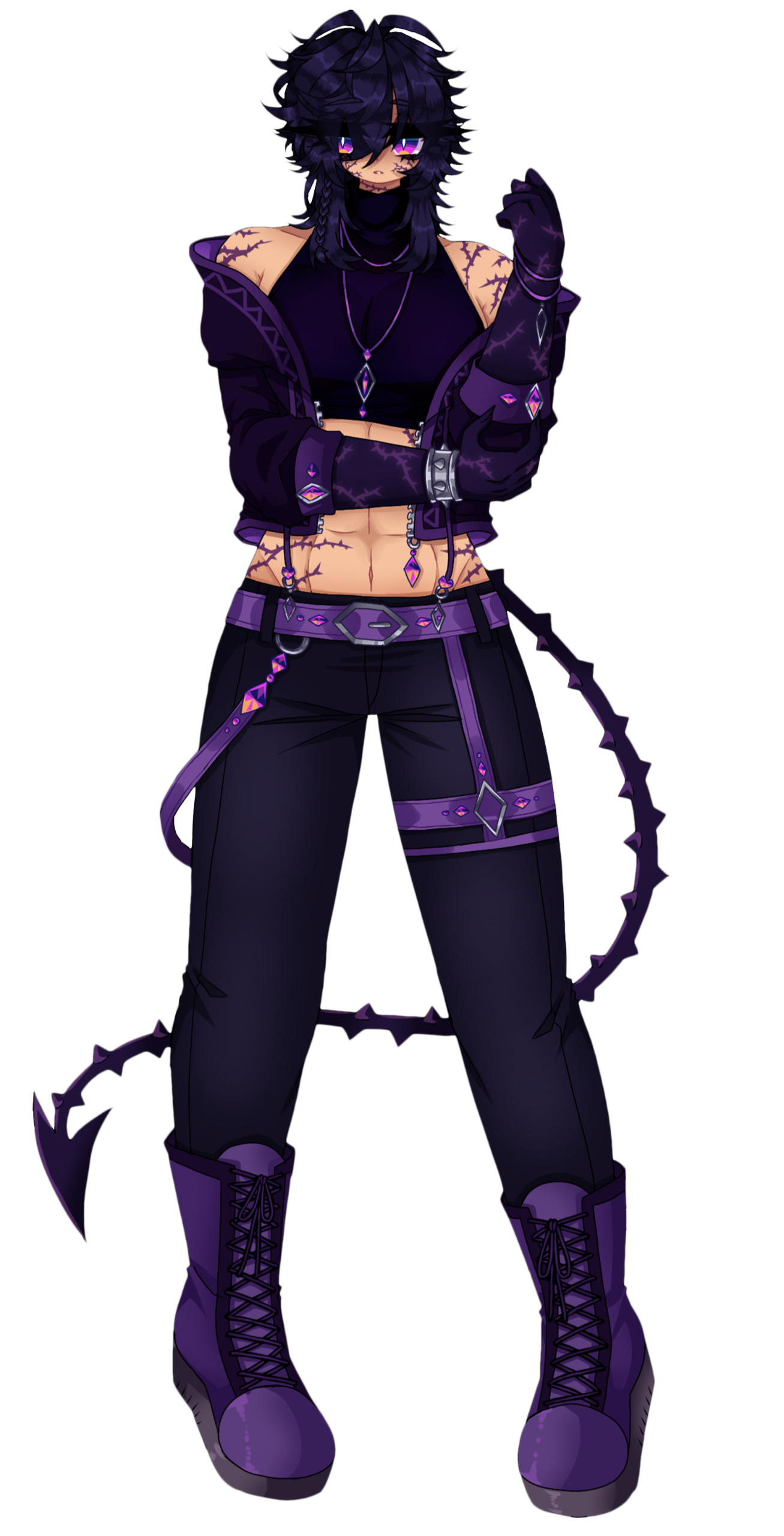 But all that got crushed the day he found some kids messing with ritual tools and attempting to summon demons because they thought it'd be funny. He kicked them out and did what he thought was interrupting the process, hoping that that would be the end of it - but unfortunately it wasn't.In the coming days he felt gradually worse. His body was in pain, he constantly thought he heard whispers or saw weird shadows near him. But he realized what was going on - he was possessed. He knew that he didn't have much time, especially since he witnessed other cases of possession before... But when he tried to ask his parents for help, he was turned away and told he was just overthinking things. He had no choice but to take things into his own hands, he truly did not wish to die.As night fell he broke into the church's forbidden archives and found a tome he heard about which contained different old exorcism methods that were considered too outdated. It was both the night of his death and of his rebirth. He chose one he was capable of doing... Which was also one of the worst he could do. With the spells from the tome he managed to kill the consciousness of the demon trying to possess him all while his body fused with the demon's essence. It required him to stab himself with an essence filled holy dagger that was there. During that, the damage killed him for a short while before his body was brought back to life through the fusion with the demonic essence. He became a half-demon, his only way of surviving as well as his new life.He hoped that his family and church would understand and just be happy he was alive. But he was wrong once more as his parents and church exiled him, dubbing him a freak of nature that shouldn't exist. It broke him. His entire life he worked hard, he was a good son and volounteer, and yet in his moment of need they abandoned him over something out of his control.