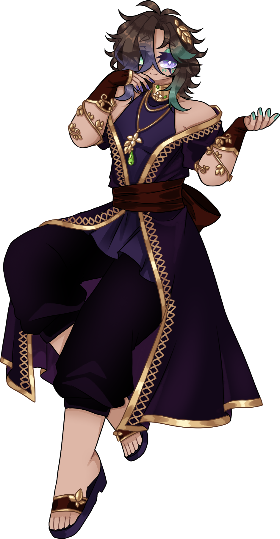 Amaya is a very cheery and carefree person. He enjoys housework and taking care of others. He's very friendly and open-minded, highly valuing any friendships he makes. He can be quite sassy and mischevious, enjoying being a bit of a gremlin every now and then. He can be quite seductive when he wants to be, and enjoys feeling desirable.He doesn't show it, but he has heavy abandonment anxiety, which fuels his desire to do his best to be wanted by others around him.He's an excellent cook, his specialty being comfort food of many kinds, although he also loves to learn new recipes.He's very flexible and quite agile, as well as possessing quite good physical strength, which he keeps up by training regularly.He possesses an above average amount of essence, but never really had interest in learning how to use magic, wanting to rely on his own body without it.